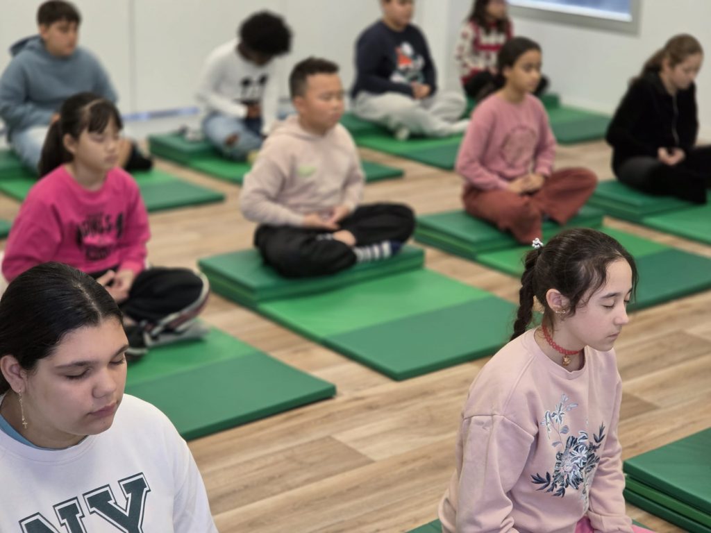 Des d’aquest curs, els alumnes de tercer cicle participen en sessions de mindfulness i relaxació dins una aula especialment dedicada al benestar, un espai pensat per baixar el ritme, reconnectar amb el cos i aprendre a gestionar millor les emocions.