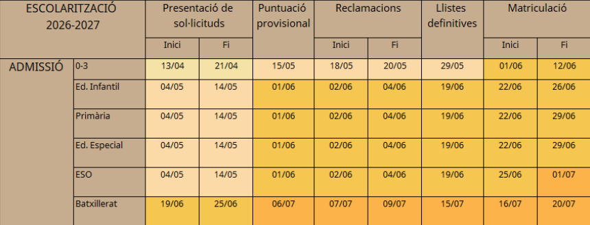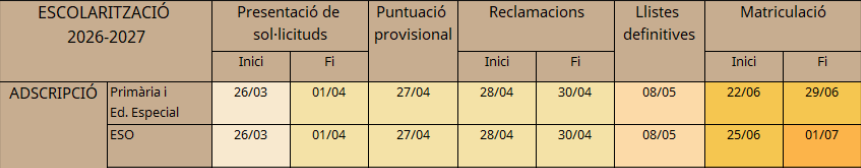 Informam les famílies sobre el procés d’escolarització per al curs 2026-2027.