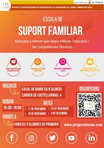 Compartim amb les famílies la informació sobre l’Escola de Suport Familiar, una iniciativa organitzada per Projecte Jove – Projecte Home Balears i adreçada a pares i mares que vulguin reforçar les competè […]