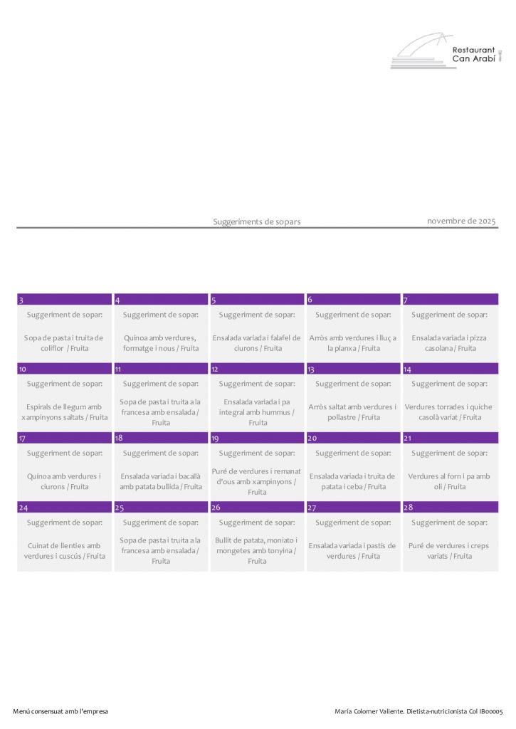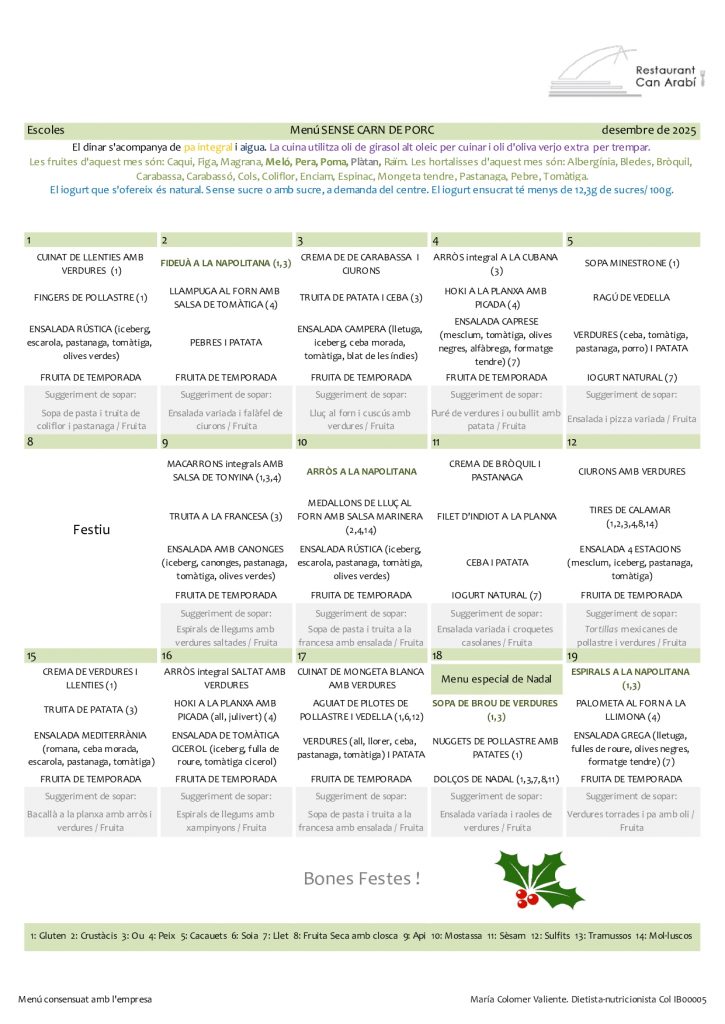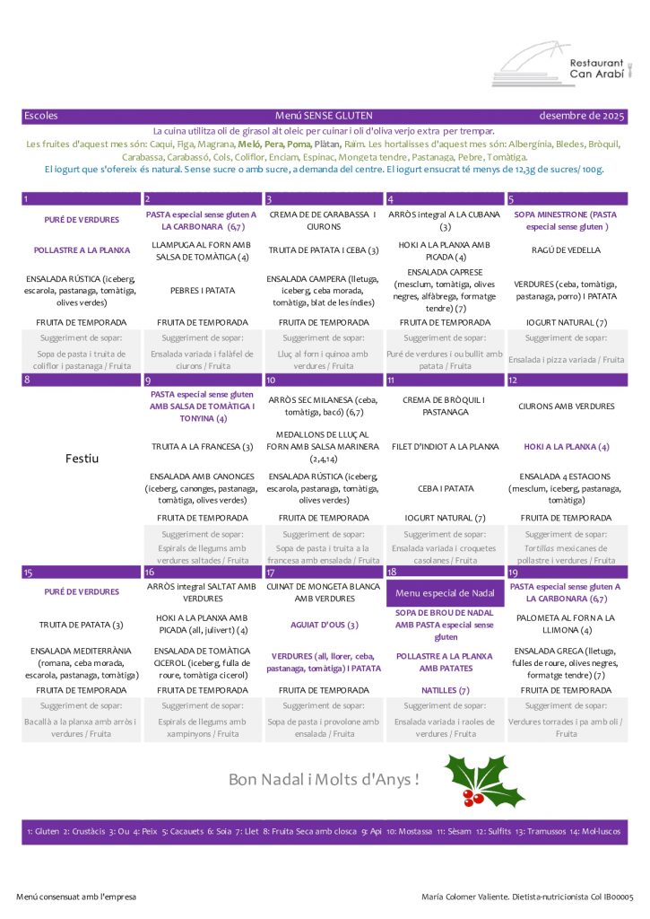 Menú mensual menjador Menú general Menú sense gluten Menú sense carn Menú general Menú sense gluten Menú sense carn