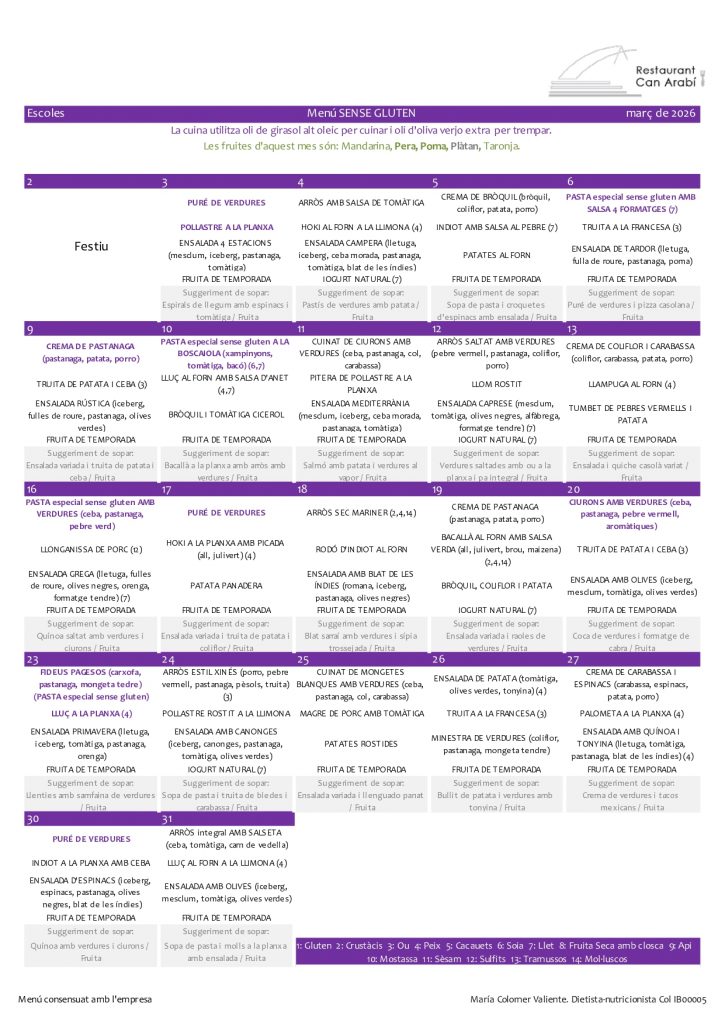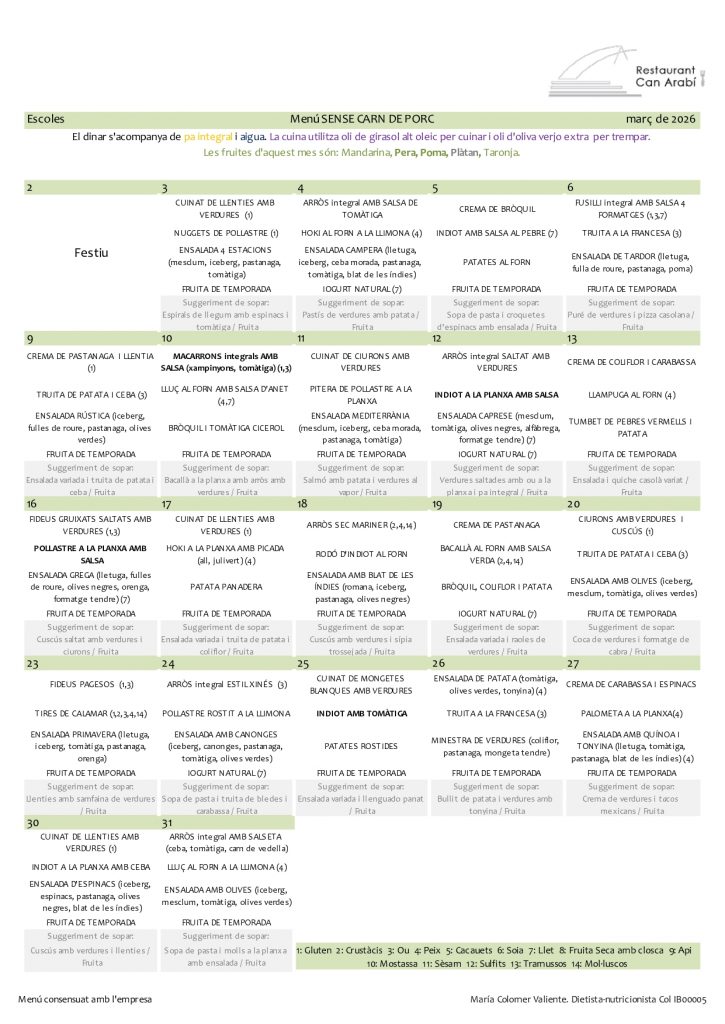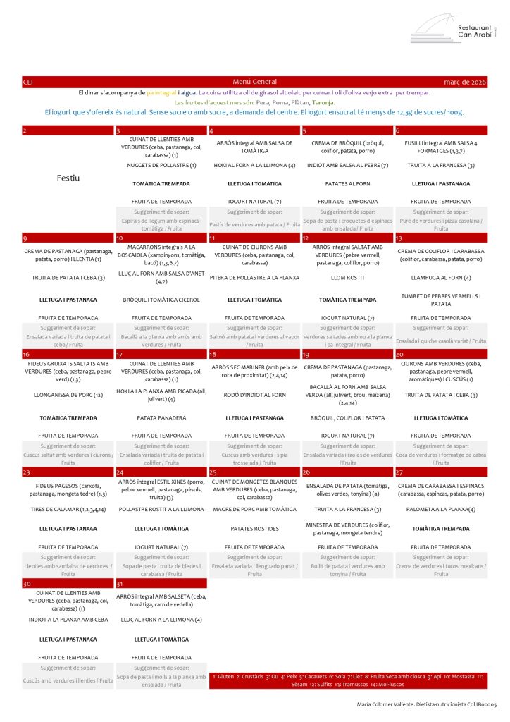 • Menú mensual menjador